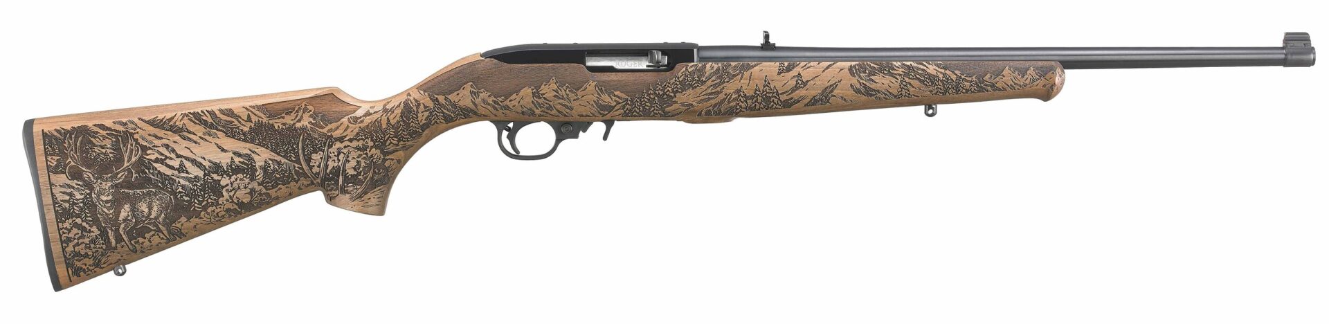 The Ruger 10/22 Mule Deer Scene is an ideal choice for enthusiasts seeking both artistic beauty and reliable performance in their rimfire rifles.